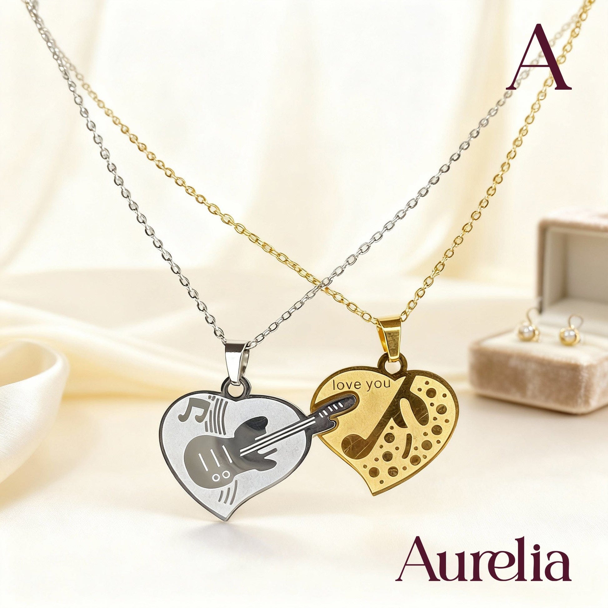 COLLAR PAREJA CORAZÓN GUITARRA Y NOTA MUSICAL