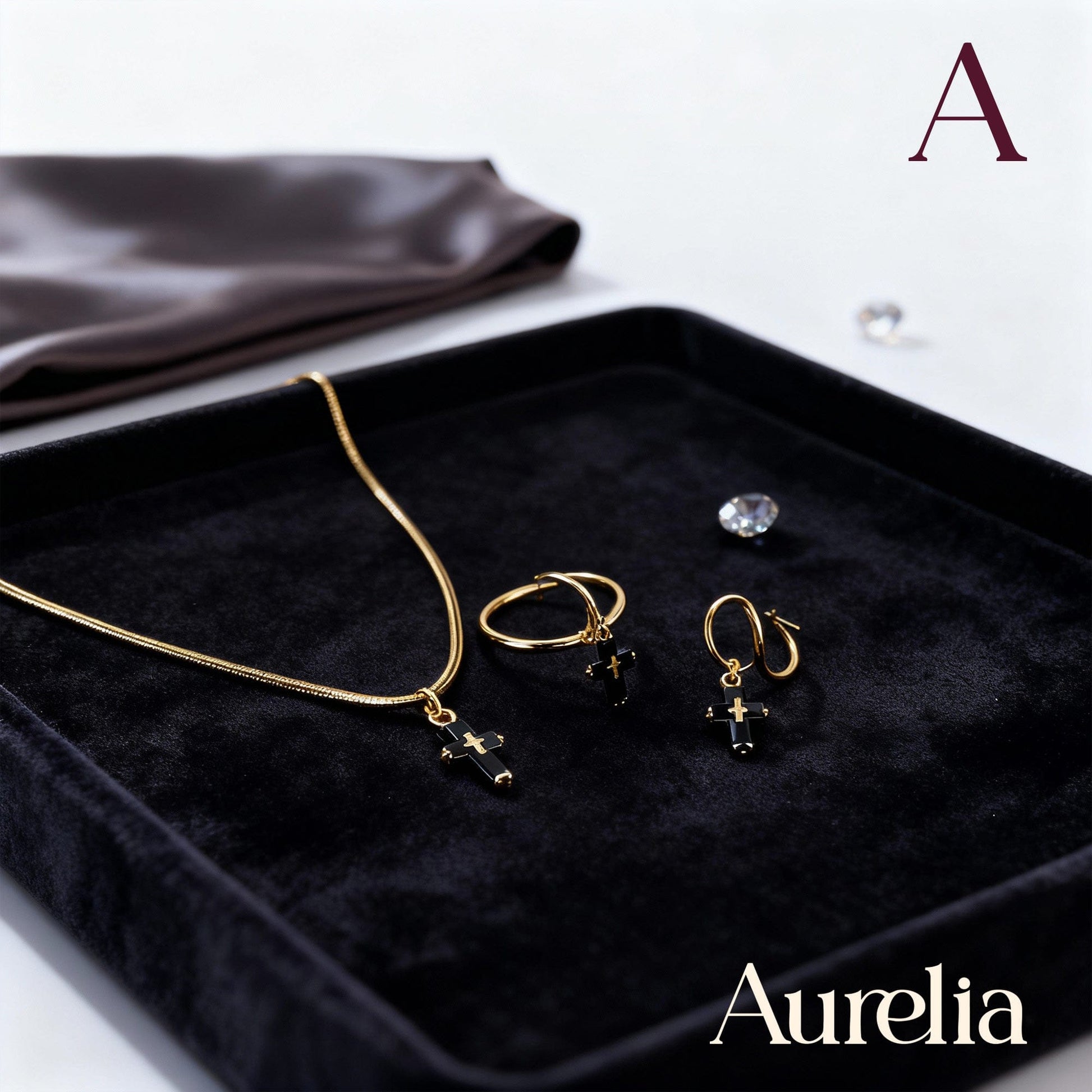 COLLAR SET ARETES LARGOS CRUZ NEGRA
